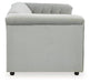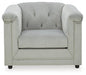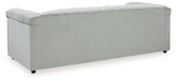 With a timeless classic Chesterfield styling that's very much in vogue, this seating package makes a brilliant statement. Its beautifully neutral silvery gray velvet fabric looks as good as it feels. Nailhead trim, button tufting and high shelter arms give the set an effortlessly elegant appeal. The hidden leg design is an on-trend addition for modern spaces.