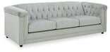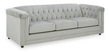 With a timeless classic Chesterfield styling that's very much in vogue, this sofa makes a brilliant statement. Its beautifully neutral silvery gray velvet fabric looks as good as it feels. Nailhead trim, button tufting and high shelter arms give the sofa an effortlessly elegant appeal. The hidden leg design is an on-trend addition for modern spaces.