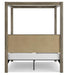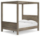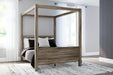 Your modern sanctuary is within reach. The subtle design of this bedroom package is accented with sleek, low profile bases. Its timeless weathered brown finish and refined champagne-colored drawer handles fit right into your urban home.