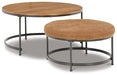 Make your nest that much more luxurious with this occasional table package. The light brown natural wood tone and contrasting black metal frames add a rustically refined look that feels right at home.