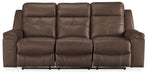 Rustic character comes forth in this dark gray reclining sofa. Designer stitching adds a fashion-forward touch to the soft cushions. Faux suede fabric speaks to your knack for superior-quality materials. High back provides ample support as you get off your feet for a bit. With just one pull of tab, you’ll be easing back into relaxation. Infinite levels of comfort await.