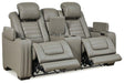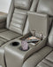 With its fashion-forward sense of style, this power reclining loveseat with console has you covered with high-tech advancements and down-home comfort. combination leather and faux leather upholstery keeps luxury comfortably within budget, while contemporary tufting beautifully goes with the flow. Love being pampered? With the touch of a button, experience the pure bliss of an air massage system (with three settings), or chill out with the heated seat element. A zero-gravity mechanism further raises the ottoman for better blood flow.